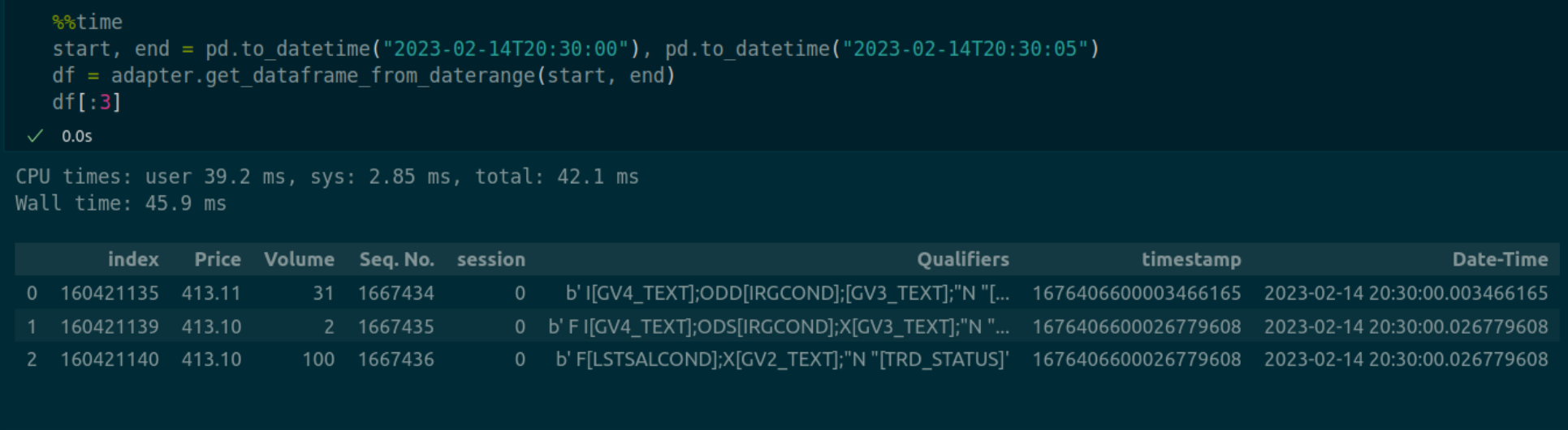 For instance, when processing compressed CSV files from Refinitiv, an adapter can load 13 compressed CSV files—each containing a year of trade data—in under 20 milliseconds:
