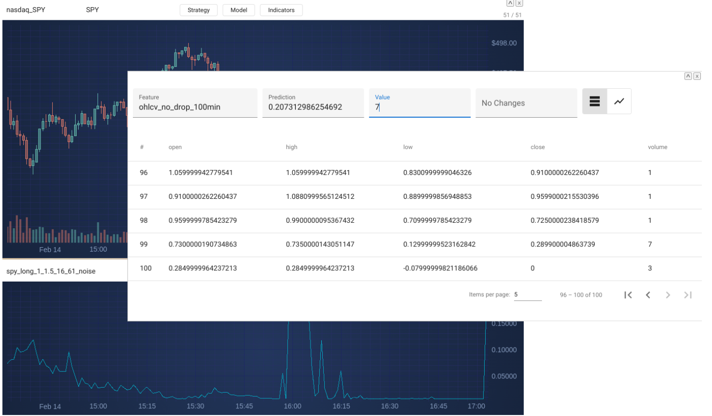 This implementation provides visualization and interaction with the predictions of an AI model over time. By selecting a data point on the model prediction graph, detailed information about the corresponding prediction can be viewed.
